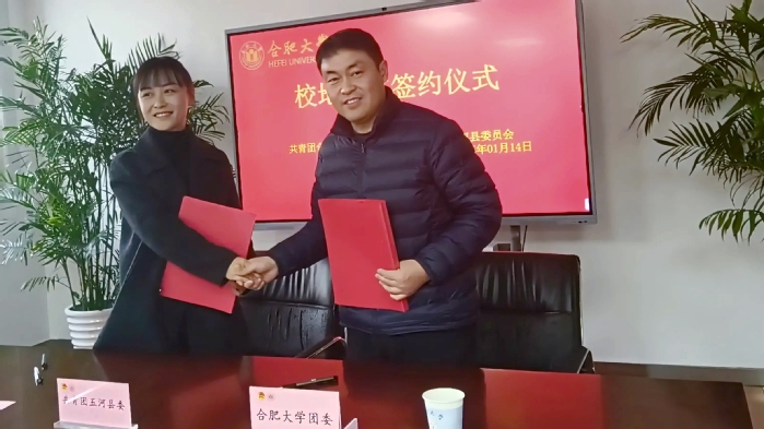 五河县团委副书记陈亚和张应杰签订了青年人才联络站共建协议,赵入德和杨红为青年人才工作联络站揭牌。