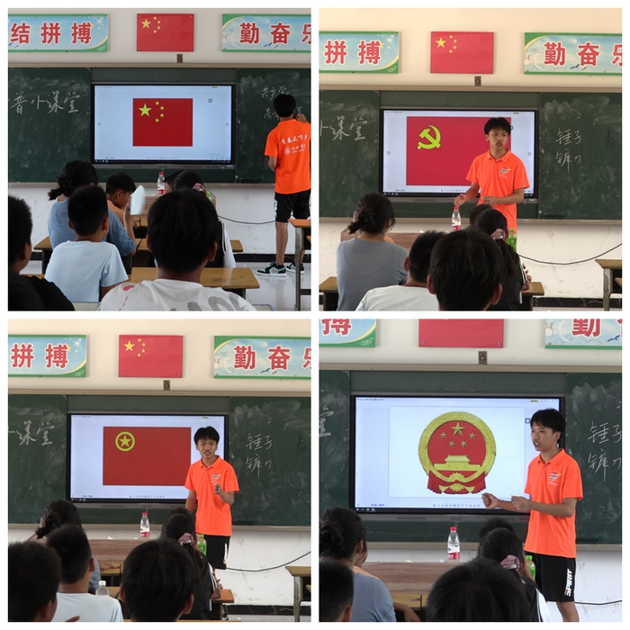 今年是中国共产党成立100周年,全社会都在学党史,但是由于教育资源的短缺,陡张村孩子们不像城里的孩子拥有各种电子设备去了解历史,他们能够接触到的或许只有课堂上的点滴。在支教中,队员向孩子们介绍中国共产党和中国共青团的先进事迹,让孩子们更加具体了解党为人民服务的宗旨,通过一个个小故事的讲述,共产党不再抽象,而是我们身边熟悉的、亲切的每一个人。