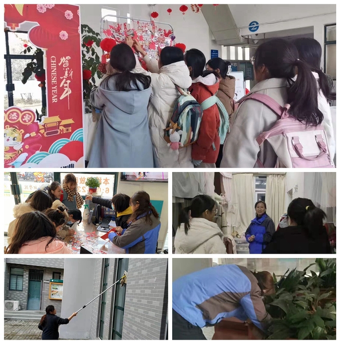 创建公寓文化,让学生暖心。年关将至,桂苑学生公寓“迎新年公寓布置”活动现场热闹非凡。学生处和大众物业设置祝福展板,邀请同学们写下对新年美好的祝愿和期盼。宿管阿姨带领学生们编织灯笼,用红灯笼、红气球、红彩带装饰公寓大厅,营造出浓厚的节日气氛。除此之外,公寓宣传栏上粘贴着文明寝室照片,留言墙上写满彼此鼓励的话语,天气栏每日更新天气预报、提醒大家增减衣物,一处处细节彰显着寝室文化品质逐步提升。