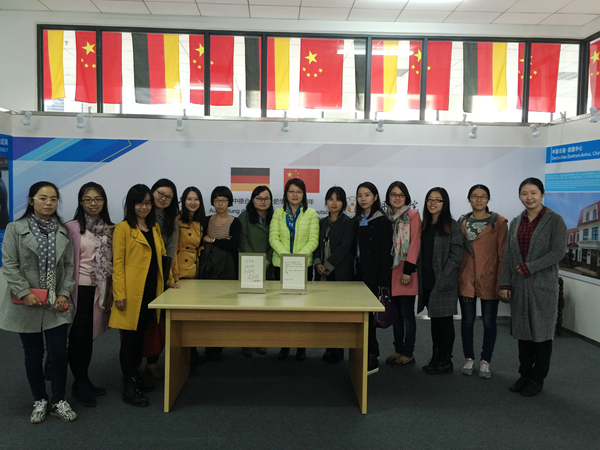 此次外事翻译人员中,外国语言系11名德语教师全程深度参与了德国代表团翻译和接待工作,在没有耽误系部教学工作的前提下,放弃休息时间,全力投入到德国高访团的翻译和接待工作中,在短短几日时间内加班加点完成了难度较高的笔译任务,翻译字数合计28132;此外,还承担了大量的口译任务,全程全天陪同7位中德领导共计7天,省市领导会见翻译3人次,以及省市领导宴请翻译多人次。“其实笔译已有的文本合同虽然繁重,却有迹可循。口译工作难度高,灵活性大,最考验翻译人员能力。我系李菲菲,张雪,刘铭渝老师协助配合省外办的接待和翻译工作,全程陪同了德方代表团,承担省市领导的陪同翻译。除此之外,江红老师在参加完两位总理访问我院的活动后,又赶赴另一会场,为陈树隆副省长和德国经济代表团的见面会承担口译任务。“我和另外四位负责包括中午和晚上的省市领导的宴请口译工作。由于省商务厅许多安排我们事先无法得知,负责口译的老师几乎都是临阵上战场的,只能用翻译前的一段时间紧急了解会议情况。”外语系教师高清回忆起当天的情形仍有些压力山大。