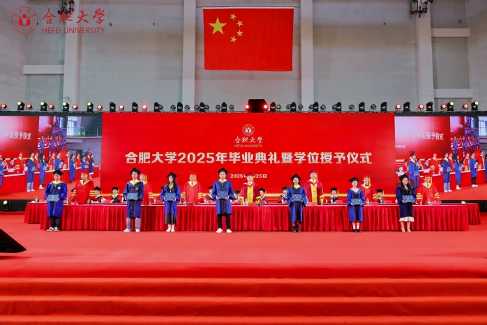 本科生毕业生代表朱茜茹、研究生毕业生代表李小凡、留学生毕业生代表苏珍秋、“西部计划”毕业生志愿者代表马慧子、教师代表肖赟教授相继发言。朱茜如表示将以校训“厚德、博学、善思、致用”为精神动力,不负伟大时代,交上一份无愧于“合大人”的青春答卷。李小凡表示,将作为基层选调生积极把技术融入乡村治理,把论文写在祖国大地上。苏珍秋感恩合大培养及“一带一路”倡议带来的机遇,立志成为中柬文化交流桥梁。马慧子承诺扎根新疆基层,以“功成必定有我”的担当投身西部建设。肖赟赠言毕业生“保持自信、学习、温情”,以中科院院士逆境成长为例,勉励做有温度的时代青年。
