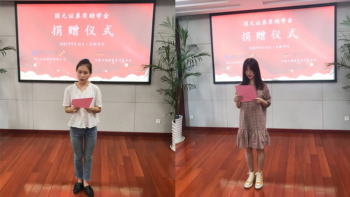 Bei der Spendenzeremonie hielten beide Seiten eine Übergabezeremonie ab. Chen Xiu stellte im Namen der Stiftung eine Spendenbescheinigung an Guoyuan Securities Co., Ltd aus. Zhu Tao gab die Entscheidung der Universität über die Vergabe der Guoyuan Securities Stipendien bekannt, und Jiang Ximin stellte den Studentenvertretern die Zertifikate aus. Jiang Zixiao, Studentin der Fakultät für Wirtschaft und Management aus dem Jahr 2018, und Wu Nan, Studentin der Fakultät für Sprachen, Kultur und Medien aus dem Jahr 2017, sprachen im Namen der Stipendiaten.