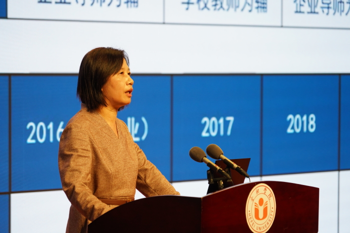 合肥学院校长吴春梅教授作题为《“专业、就业、产业”三业一体人才培养模式改革考察》的报告。她表示,合肥学院“三业一体”的人才培养模式,立足产业发展,围绕重点产业设置专业,建立动态专业调整机制,培养具有国际视野和创新实践能力的人才。近年来,我校借鉴德国双元制教育模式,与企业在高等教育领域开展广泛合作,让学生的能力与企业的需求无缝对接。她表示,中德教育合作离不开政府的支持和企业的参与,合肥学院会继续积极与德国开展交流探讨,在培养应用型人才方面做出更大成绩。