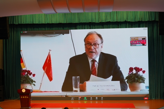 下萨克森州中国事务专员托马斯·汉施克教授围绕“中国-下萨克森州研究中心”作了报告。他表示,中德合作项目为推动中德双方持续发展与深入合作奠定了坚实基础,中德双方的合作交流,让科研和教学的跨国互动有了质的飞跃。在当下,数字化转型、网络安全与智能制造等领域的专业受到学生和企业的青睐,希望校企双方加强合作交流,分享经验,实现共赢。