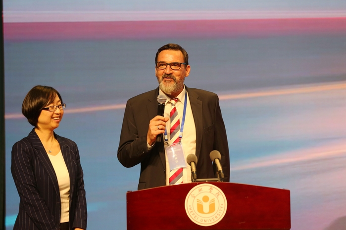 国际儒学联合会副会长、汉学家、哥廷根大学施寒微教授围绕“中德的学术合作”作报告。他提出,要加强中德双边理解与合作,共同推动两国经济、文化、教育等各方面的发展。他表示,随着中国的高速发展,中国文化被世界广泛关注,而中国也在保留自己的特色文化的基础上,秉持开放包容、兼收并蓄的多元一体格局,不断吸收借鉴异域、异族文化中的优秀成果,始终坚持与其他国家和民族开展跨文化交流。他表示,德方会更深入地了解中国文化,与中国建立平等友好的合作关系。