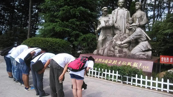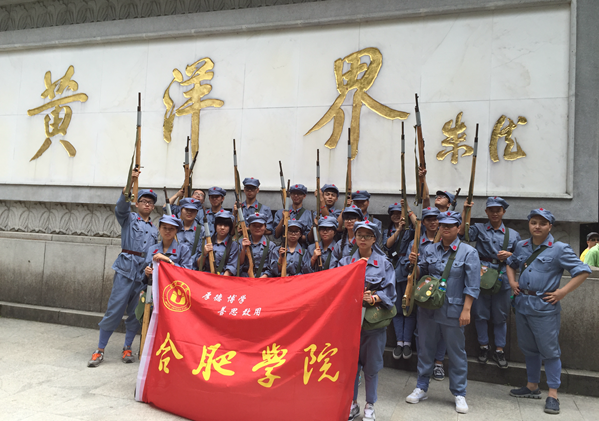 旅游系 “井冈情·中国梦”大学生暑期实践团队在全国青少年井冈山革命传统教育基地,学习了《三湾改编》、《井冈丰碑》,前往大井朱毛旧居及领袖峰学习毛泽东坚持学习、勇于探索等井冈山精神,并在此过程中进行了实地调研。管理系服务队在海恒社区开展党员走访活动,认真学习老一辈的革命精神,深刻了解老党员的心路历程与入党感悟。以“反腐倡廉”及“当代大学生成为党员应具备的素质”为主题展开交流学习,组织居民观看抗日宣传片《闪闪的红星》,铭记历史,纪念抗战胜利。电子系服务队在大别山烈士陵园,瞻仰烈士墓、纪念碑,以鞠躬敬礼的方式表达对革命先烈的崇高敬意。在烈士墓前,刘鹏飞老师给大家上了一堂生动的爱国主义教育课。机械系开展“勿忘历史 珍惜当下”系列活动,听老党员追忆红色回忆,见证历史事实,学习革命精神,发扬优良传统。教育系前往徽州区岩寺镇新四军军部旧址参观学习分别开展了重温入党、入团誓词活动。