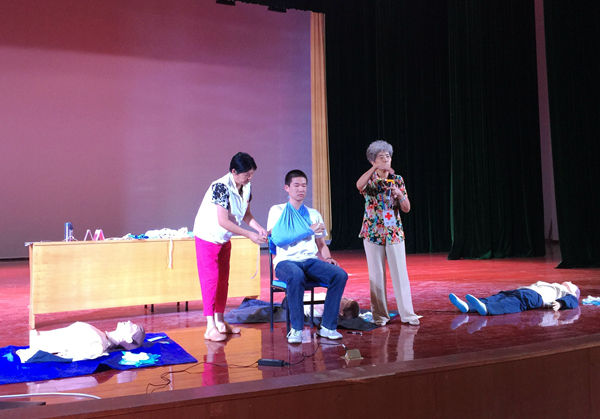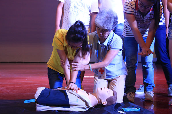 今年6月,我校外语系2013级日语专业马朝霞、朱磊等同学在校内对落水者实施心肺复苏急救的事迹感动了广大师生,也再一次将紧急救护知识普及的重要性拉入了我们的视野。今年,我校新生入学教育中由学生处、公管处特别邀请合肥市红十字会、市疾控中心专家就普及基本救护知识,提高2015级新生面对突发事件的现场应急救护能力,加强青少年自救、互救、急救的能力为新生开展急救知识培训及传染病防治的讲座。为保证培训效果,提高新生参与机会,讲座共分分四场进行。