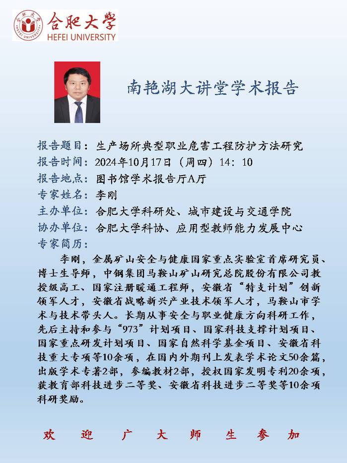 【南艳湖大讲堂】生产场所典型职业危害工程防护方法研究