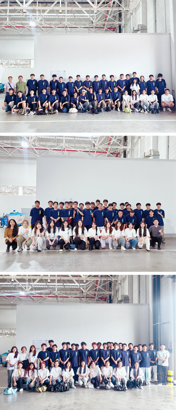 步入生产车间,学生们沉浸于秩序井然、技术碰撞的工业环境中。高度自动化的生产线与精益求精的工艺流程相互辉映,凸显出大众汽车在智能制造领域的卓越地位与不懈追求。机器人协同作业的精准高效,不仅提升了生产效率,更展现了工业4.0时代下智能制造和智能网联风采。冲压车间的巨大机械手臂转动自如,焊接车间的激光焊点平滑细腻,涂装车间的色彩魔法让人目不暇接,总装车间的精细装配更是彰显了大众汽车人的工匠精神。在亲历生产现场的过程中,学生们深刻领悟到了科技创新与传统制造工艺的完美融合,以及规模化生产背后所蕴含的精细化管理哲学。